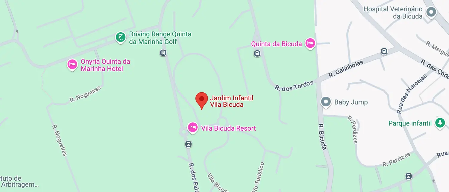 A Creche Kids Vila Bicuda está localizada no Aldeamento Vila Bicuda, na Quinta da Bicuda, num espaço concebido de raiz para responder às necessidades das crianças. A funcionar numa vivenda especialmente construída para este fim, proporciona um ambiente seguro, acolhedor e familiar, garantindo o bem-estar e o desenvolvimento harmonioso das crianças.
